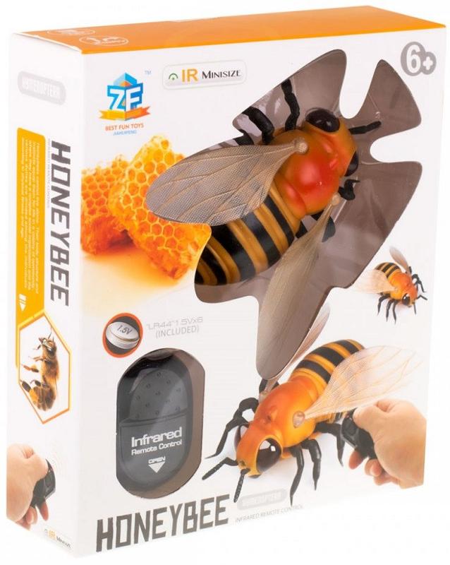 Пчелку можно легко спутать с настоящим насекомым, поскольку её движения очень реалистичные и станет замечательным презентом для любого ребенка. Пчелка может двигаться вперёд, останавливаться и разворачиваться вправо. На нижней части игрушечного насекомого предусмотрены колеса. Демо-режим позволяет понаблюдать за её поведением. Для включения демо-режима необходимо одновременно удерживать 2 кнопки движения на протяжении 3 секунд. Для выхода из режима -- удерживать кнопку движения вперёд на протяжении 3 секунд. Питания пульта 3 батарейки LR44 (в комплекте). Питания пчёлки 3 батарейки LR44 (в комплекте). Радиус действия 10 м. Пчела не летает, а ездит. Размер пчелки 11 * 8 * 3,5 см. Размер коробки 17 * 5 * 24 см.