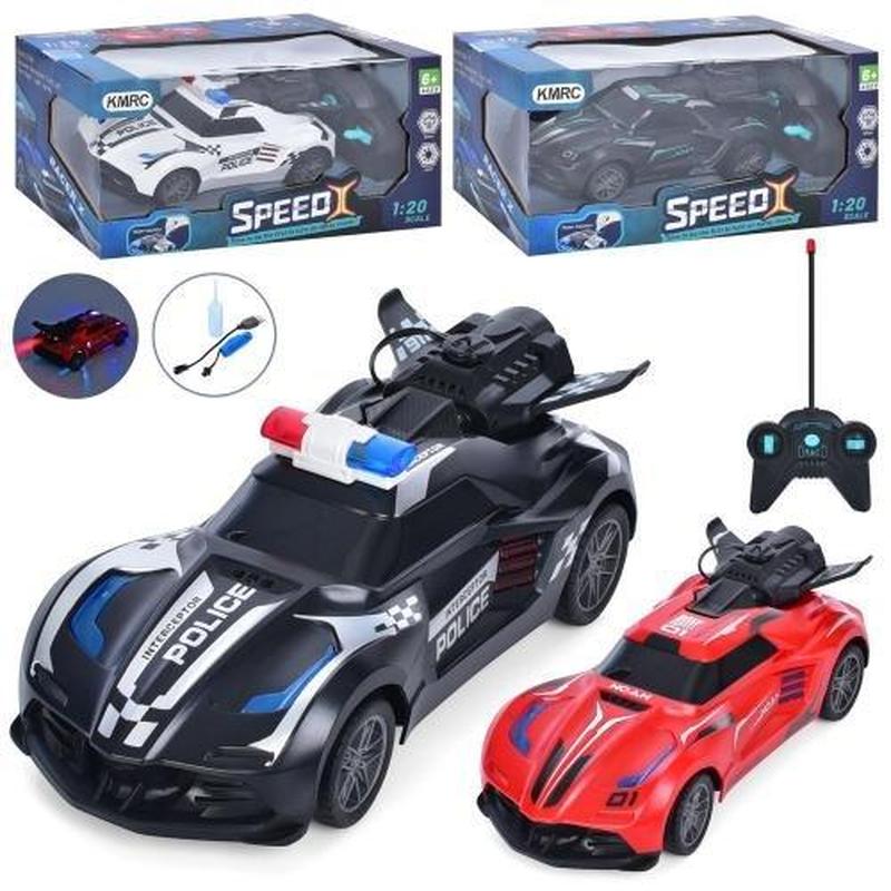 Машина KM660-2-3A (24шт) р/к, акум, 18,5см, 1:20, пара/дим, світло, USBзарядне, 2 види по 2 кольори (1вид-поліція), в кор-ці, 25-11,5-12см