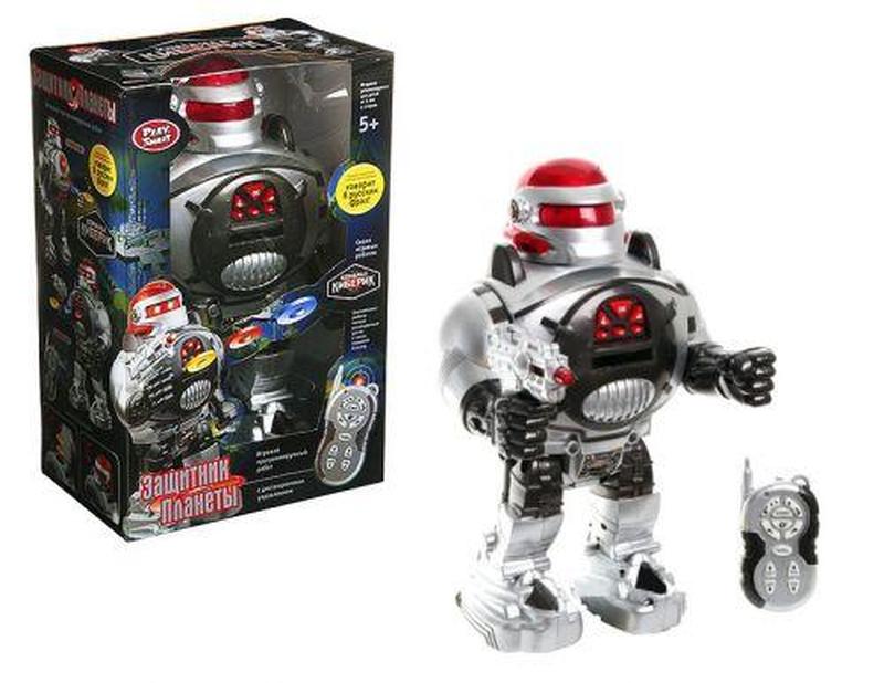 Уценка. Робот на радиоуправлении "Команда киберик: Защитник планеты" (не все движения выполняет,не комплект) Робот на радиоуправлении "Команда киберик: Защитник планеты". С помощью пульта инфракрасного управления робот точно выполняет заданные функции: ходит или скользит вперед-назад, поворачивает влево-вправо. Также, робот стреляет дисками, говорит 8 фраз на русском и даже танцует. Со световыми эффектами.__ Бренд: Play Smart Упаковка: Коробка Цвет: Серебристый Тип эл-тов питания: Батарейки (АА) Кол-во эл-тов питания: 4 Эл-ты питания в комплекте: Нет Вес в упаковке: 1030 г Габариты в упаковке: 32 x 21 x 14 см Габариты без упаковки: 31 x 19 x 11 см Cтрана производитель: Китай Материал: Пластик Комплектация: Робот, пульт, диски