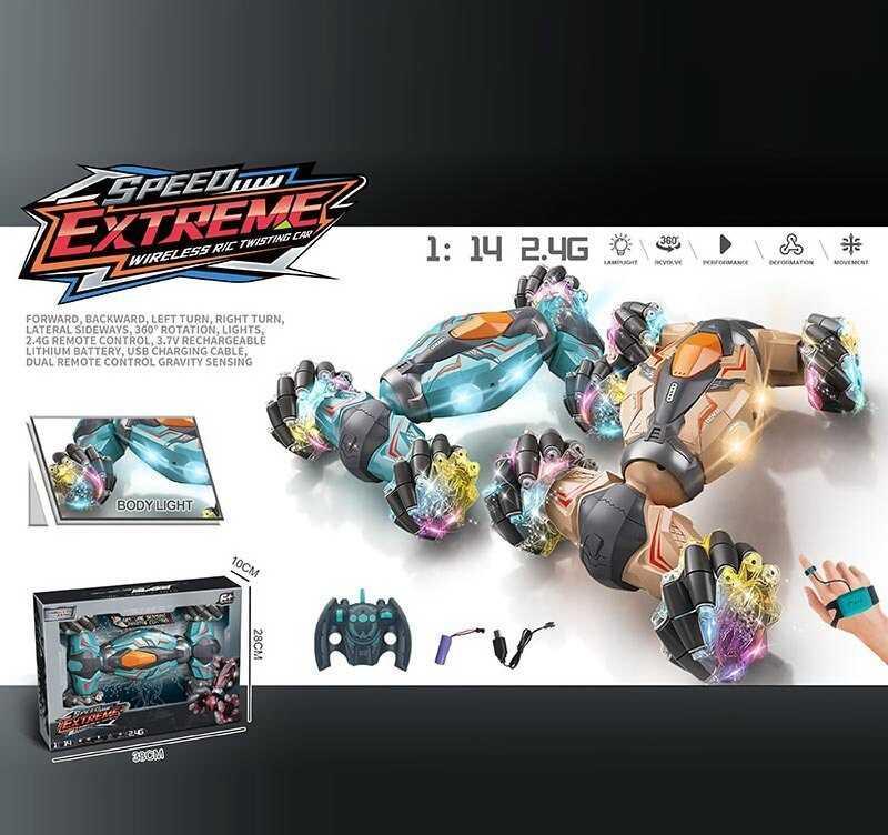 Радиоуправляемый автомобиль yj 098-3 a (24) 2 вида, браслет+пульт, аккум. 3,7 v, 4х4, звук...