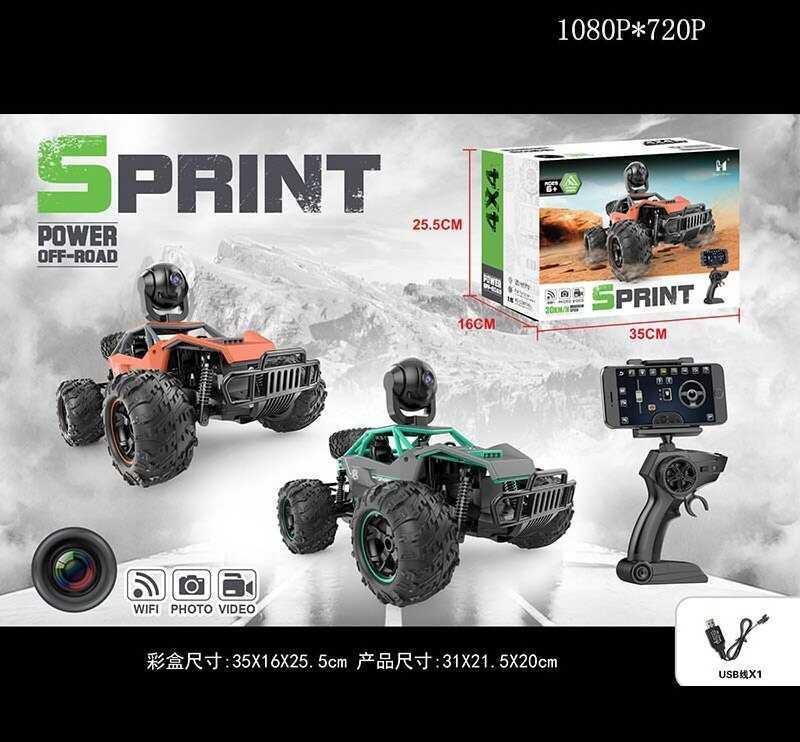 Радиоуправляемый джип Sprint LH-C 039 W-1 Этот мощный джип сочетает высокую скорость до 30 км/ч, инновационные технологии управления через Wi-Fi и удобство эксплуатации. Оснащён HD камерой 1080p/720p, что позволяет вести съемку фото и видео в режиме реального времени с передачей изображения на смартфон. - Пульт управления 2.4 GHz со стабильной связью на большом расстоянии - Питание от аккумулятора с USB-кабелем в комплекте - Яркая LED подсветка для игр в темноте - Большие противоударные колёса с резиновым покрытием и мощная подвеска для бездорожья - Противоударный корпус для защиты от повреждений - Удобный держатель для смартфона в комплекте - QR-код для быстрого доступа к приложению управления