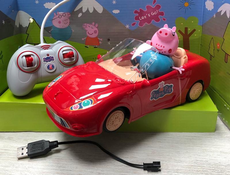 Машина на радіокеруванні peppa pig, акумулятор 3.7 v, підсвічування, гумові шини, фігурки...