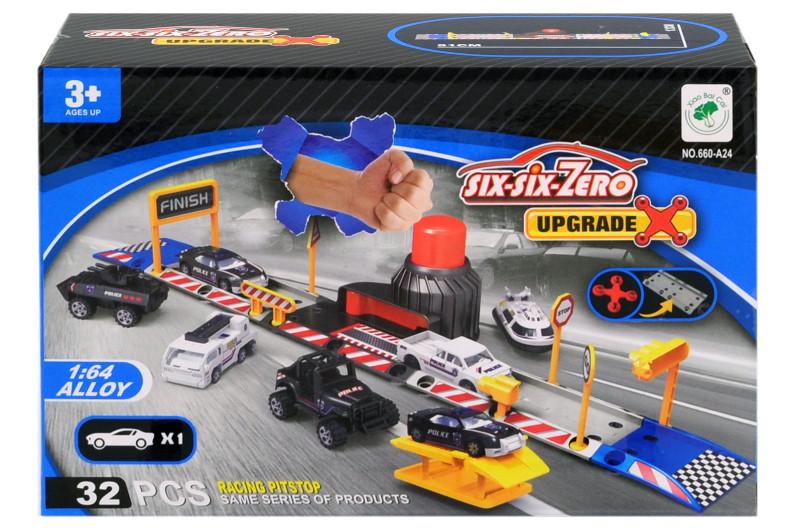 Во многих мальчиков любовь к автомобилям проявляется с раннего возраста. Если ваш ребенок тоже относится к фанатам гоночных автомобилей, поддержите его захвата, подарив ему крутой паркинг для машинок, который дополнит коллекцию. Набор точно удивит Ваших малышей своей функциональностью, а Вас приятной ценой. Машина едет по трассе, ее просматривают, а затем отпускают для продолжения нажатием специальной кнопки. В комплект входит одна полицейская машина, дорожные знаки и, конечно же, трасса для пит-стопа. Размер уже собранной конструкции 51х12 см. Состоит из 32 деталей. Так же в наборе с треком есть 1 машинка. Для детей от 3-х лет. Размер упаковки - 20*9,5*13 см.