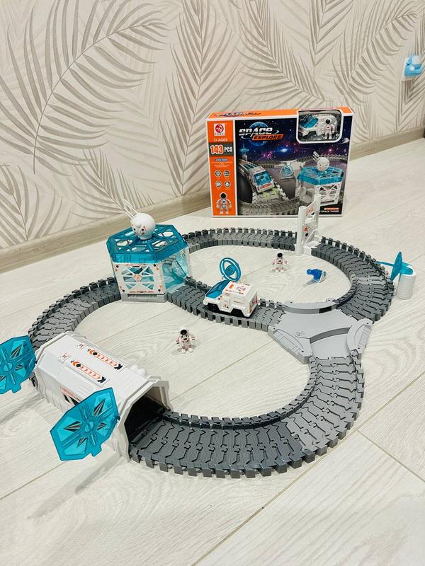 Скоростной трек из серии Space Explore для юных исследователей космоса🧑🚀 Которые смогут устроить гонки и воссоздать увлекательную космическую вселенную🪐 Машинка двигается с большой скоростью🚙💨по трассе которую можно складывать разным образом🔀 Световые эффекты у машинки🔦 Сделано в стиле космической станции 🛰️ В комплекті є 2 астронавти🧑🚀👩🚀 Яскравий проектор 📽️ звездного неба🌠Да скоростная машинка🚙 Можно собирать различные вариации трека🎢 143 деталей⚙️ 🔋Работает от батареек 2шт. ААА (не прилагаются) Совместимый👌с другими треками серии Space Explore🛰️