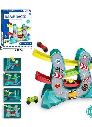 Многоуровневый трек с цветной расцветкой - самая интересная игрушка для маленьких мальчиков! Легко сборная конструкция позволит ребенку самостоятельно собрать трек. В комплект входят 4 маленькие машинки, которые будут самостоятельно спускаться с верхнего уровня до самого низа. Для начала игры достаточно установить машинку на стартовую площадку, а дальше будут действовать законы физики. Игрушка легко завладеет вниманием ребенка и наполнит его досуг яркими эмоциями. Особенности: - трек-конструктор “Збери сам”; - набор включает 12 элементов; - легко сборная конструкция; - 4 цветных уровня; - 4 машинки; - пошаговая инструкция с обратной стороны; - трек выполнен из прочного пластика и не содержит вредных красителей. Размеры / габариты - Длина (см): 28.3 см - Ширина (см): 9.8 см - Высота (см): 20.2 см Размер упаковки: 21 см × 6 см × 26 см Упаковка: Коробка Возраст: от 3 лет