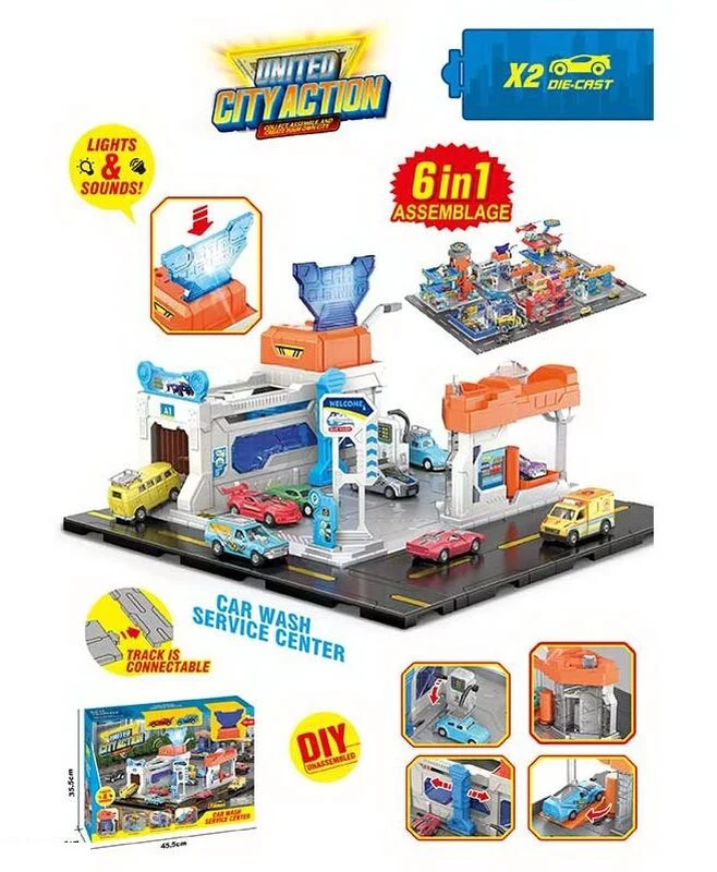 Игровой гараж парковка автомойка со звуком и светом sk 6604, 2 машинки