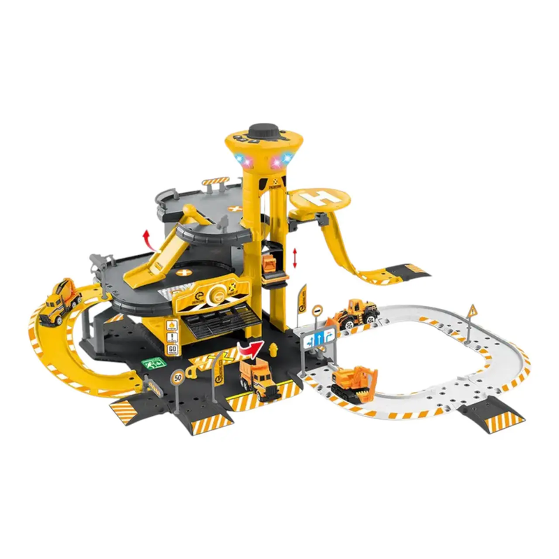 Используйте собственную фантазию для того, чтобы собрать этот мультифункциональный трек-парковку! Развлекайтесь и исследуйте все его функции вместе с друзьями. Придумывайте разнообразные сценарии игры и погружайтесь в мир веселья! Особенности: - размер полностью собранного трека 53х65.5х34см; - 3 кнопки звука: мелодия, фраза+подъем, фраза+опускание; - воспроизведение фраз на английском, указывающих в каком направлении движется лифт; - звуковые эффекты сопровождаются цветной подсветкой; - кнопка на элементе над воротами гаража выталкивает автомобиль; - регулируйте высоту одного из спусков с помощью рычага; - эффекты работают от 2-х батареек АА (не прилагаются); - 3 металлопластиковых модели спецтехники с подвижными элементами; - транспорт масштабом 1:64; - больше 60 деталей в наборе; - наклейки; - изготовлено из прочных и безопасных материалов. Размер упаковки: 62.5 см × 9.5 см × 44.5 см
