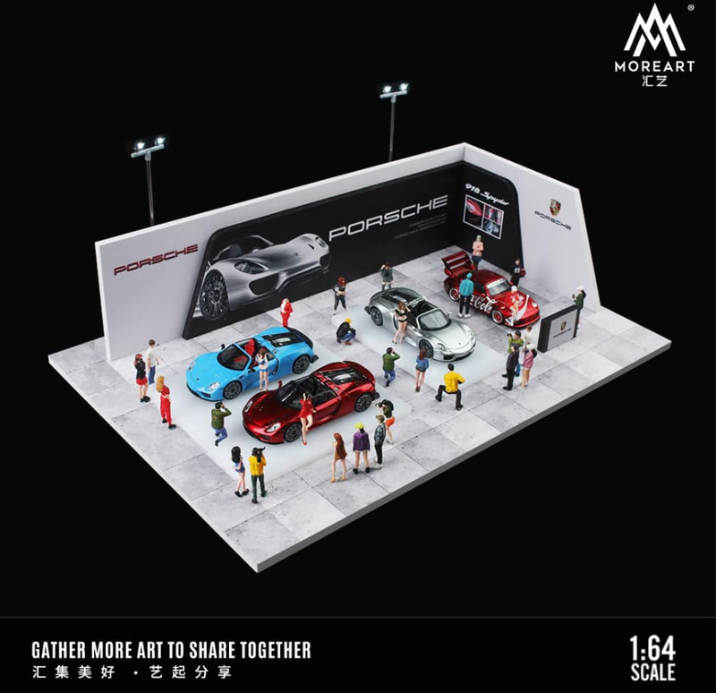Діорама Showroom 1:64 з світлодіодним підсвічуванням у стилі PORSCHE Країна виробник Китай Бренд: MOREART Масштаб: 1:64 Розмір моделі (приблизно см): 30*20/7*12 см Матеріал: ПВХ, акрил Стан моделі: новий з оригінальною коробкою Вага: понад 700 гр. з упаковкою.