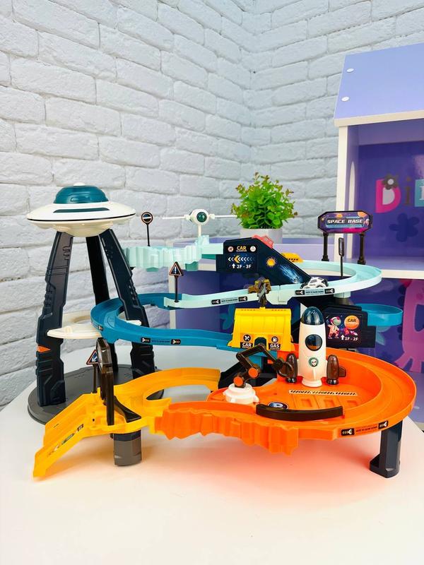🪐ТРИРОВЕННЫЙ КОСМЕЧНЫЙ ТРЕК 🚗 УКРАИНСКИЙ ОЗВУЧКА🇺🇦 Артикул: 2338 Космическая станция 🪐- интерактивный трехуровневый трек, который включает множество игровых элементов 😻: летающую тарелку, шаттл, космическую станцию и 4 машинки, которые двигаются на большой скорости вниз, преодолевая крутые повороты и 🛝 спуски Автоматический подъемник активирует звуковые эффекты: нажмите на соответствующую кнопку и начнут греть детская песня о космосе 🪐 и сказка. Яркий трек с дополнительными эффектами позволит ребенку окунуться в удивительный мир космоса, развевить воображения и вдохновит на создание новых фантастических сюжетов! 🎢 автоматический подъемник; 🏎️4 машинки в наборе; 🎵 звуковые эффекты; 🎶 воспроизведение сказки и детской песни о космосе; 🚙яркая подсветка; 🏎️непрерывное движение машинок; 🚗2 трапы (заезда и выезд), детализированные площадки, крутые повороты и спуски; Летающая тарелка 🛸 работает от 3 батареек 🔋типа AG13 (прилагаются); Подъемник работает от 3 батареек 🔋 типа “АА” (не прилагаются). 📐Размер: 50х30х35см