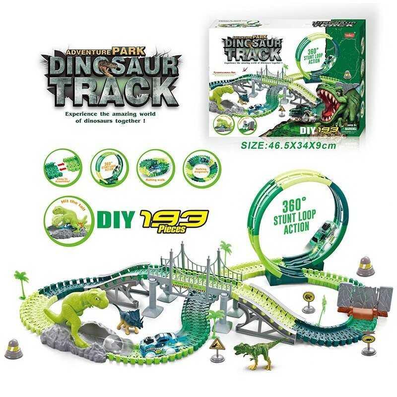 Интерактивный дино трек 365 (18/2) с подсветкой, 193 элемента, длина 395 см, аксессуары в...
