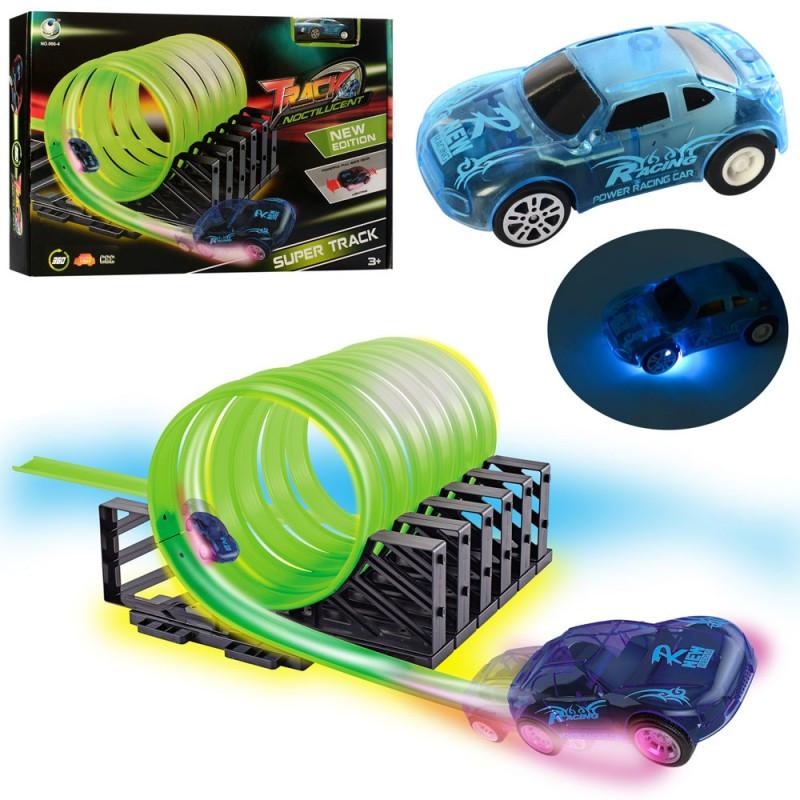 Трек 066-4 світ.в темряві, машина інерц., 2 шт., оберт 360, світло, бат. (таб.), кор., 46-31-5,5 див. Артикул:066-4 Країна похождення: КНР Тип механізму: на батареях ББ