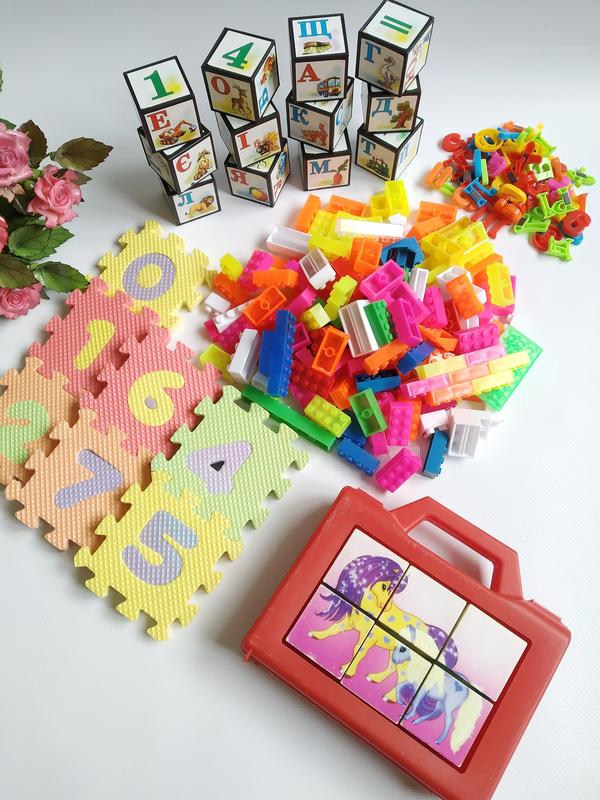 ‼️Іграшки моєї дитини. 🔸Фото 2 - кубики. Повний комплект. Кубики в хорошому стані. На кожній стороні букви і цифри з картинками. 🔸Фото 3 - м'які пазли. ‼️Некомплект. Є потеряшкі (3,8,9). Внутрішня частина пазлів вынемается. Є невеликі сліди експлуатації, але, загальний стан хороший. 🔸Фото 4 - кубики. Повний комплект. ‼️На самих кубиках є незначні сліди експлуатації, коробочка не в ідеалі, і відсутня верхня прозора плівка. 🔸Фото 5 - дитячий конструктор. ‼️Некомплект. Мне сложно сейчас с точностью указать количество отсутствующих деталей, ребёнок с этим конструктором играл не один год. Сильно больших пирамидок построить вряд-ли удастся (тут не такие детали), но, для постройки небольшой башни, или каких-то заборчиков подходит. Общее состояние конструктора хорошее. 🔸Фото 6 - цифры и буквы на магните. ‼️Некомплект. Есть потеряшки. Точное количество потеряшек указать не могу (на некоторых вылетел магнит, пришлось их выбросить), но, в наборе было два комплекта (повторы), для занятия этих цифр и букв должно быть достаточно. Состояние хорошее. ‼️Ціна вказана за лот. 🔥В наявності багато інших цікавих іграшок, дивіться мої лоти. ☝️Перед оформленням замовлення, ознайомтесь будь ласка з інформацією в профілі. 🛑 Умови оплати і доставки зазначені в розділі "ПРО МЕНЕ". Дякую що заглянули 💖