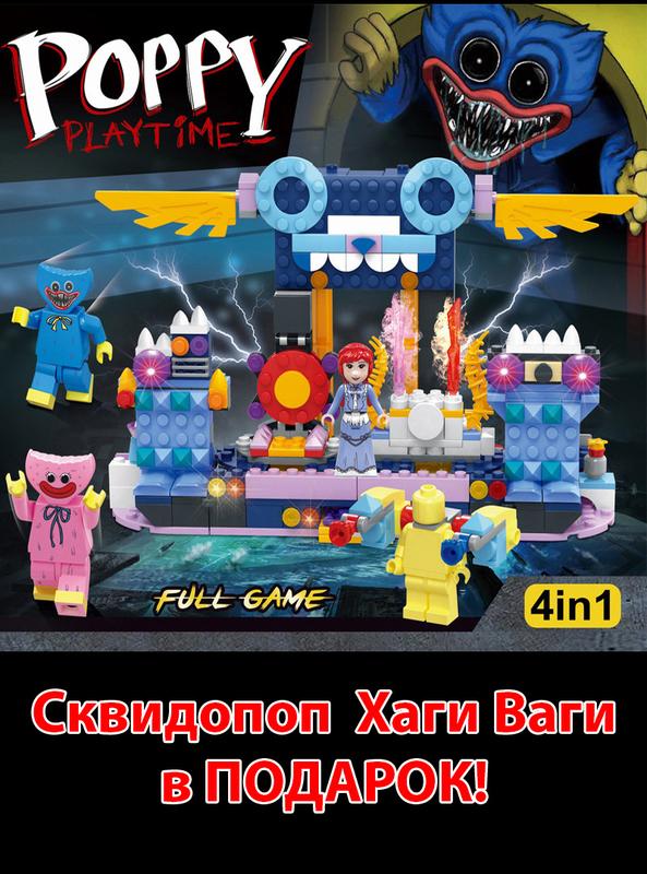 АКЦИЯ! В подарок Сквидопоп браслет Хаги Ваги (любой цвет на выбор) Конструктор по сюжету знаменитой компьютерной игры Poppy Playtime (Хаги Ваги). Он непременно приведет в восторг юного поклонника игры, и обеспечит много часов увлекательных занятий. Набор представлен в оригинальных красочных коробках. Количество деталей: 372 Набор состоит из 4-х коробок, каждая из которых содержит одного персонажа игры, и блоки, из которых выстраивается обстановка, присутствующая в игре. Размер каждой коробки: 19 х 14 х 4,5 см. В набор входят такие виды: Хагги Вагги - 98 деталей Кисси Мисси - 97 деталей Игрок - 86 деталей Кукла Поппи - 91 деталь Общее количество деталей: 372 Собранные вместе, все 4 конструктора соединяются между собой и образуют одну большую локацию из игры (4-е фото - вживую). У фигурок двигаются руки и ноги. Все детали качественные, прочные, хорошо крепятся между собой В комплекте подробная инструкция по сборке. Каждый из 4-х конструкторов так же можно приобрести отдельно. Цена 285 грн. Конструктор имеет высокое качество, полностью идентичен оригинальному Lego, и может быть интегрирован в другие игровые сюжеты. На сегодняшний день игра Поппи Плейтайм находится на пике популярности. В нее играют большинство детишек школьного возраста. Поэтому такой конструктор станет отличным вариантом подарка на все случаи, как мальчику, так и девочке. Так же в наличии есть мягкие игрушки: Хаги Ваги (разных цветов) - размер 40 и 80 см Киси Миси - размер 40 и 80 см Мама длинные ноги (Mommy Long Legs) Папа длинные ноги (Daddy Long Legs) Кукла Поппи и другие персонажи игры Poppy Playtime