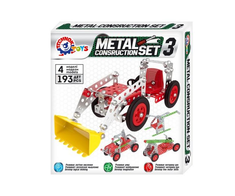 Іграшка "Конструктор металевий ТехноК", з серії принципово нових металевих конструкторів ТехноК, що є результатом спільної роботи наших розробників з українськими педагогами. В основу лінійки закладена ідея – «від простого до складного».Іграшка "Конструктор металевий ТехноК", арт.6412- це рівень –«Junior». Складається з 193 деталей, з яких можна зібрати 4 моделі: грейдер, автокран, гвинтокрил, вантажівка. Збільшена складність моделей, ще більша різноманітність пластикових деталей. Радимо використовувати конструктор як для домашнього використання, так і для занять в групах в дитсадках (від 5-ти років) та в молодших класах.Як відомо, металічні конструктори є найкращим навчальним матеріалом для розвитку практичних умінь по роботі з різьбовими з’єднаннями. Діти отримують навички роботи з викруткою та гайковим ключем. Також гра з металевим конструктором сприяє розвитку логічного мислення, просторового уявлення і спостережливості, а створення власних моделей є основою розвитку креативного мислення дитини. І, звичайно, розвиває навички організації праці, послідовності у виконанні роботи, сприяє розвитку дрібної моторики рук. Конструктор знайомить дитину з простими кресленнями та схемами, технічними назвами деталей і механізмів.На допомогу юним механікам – кольорова, детальна покрокова інструкція, яку також можна звантажити з нашого корпоративного сайту. Зібравши всі моделі згідно з інструкцією, рекомендуємо перейти до творчої роботи, а саме власних моделей. Як навчальний матеріал також можна використовувати наші відео моделі з Youtube каналу. Перед створенням моделі з Youtube, переконайтесь, що у Вас є достатньо деталей для тої чи іншої моделі. Це буде цікаво не тільки малюкам, а і дорослим.