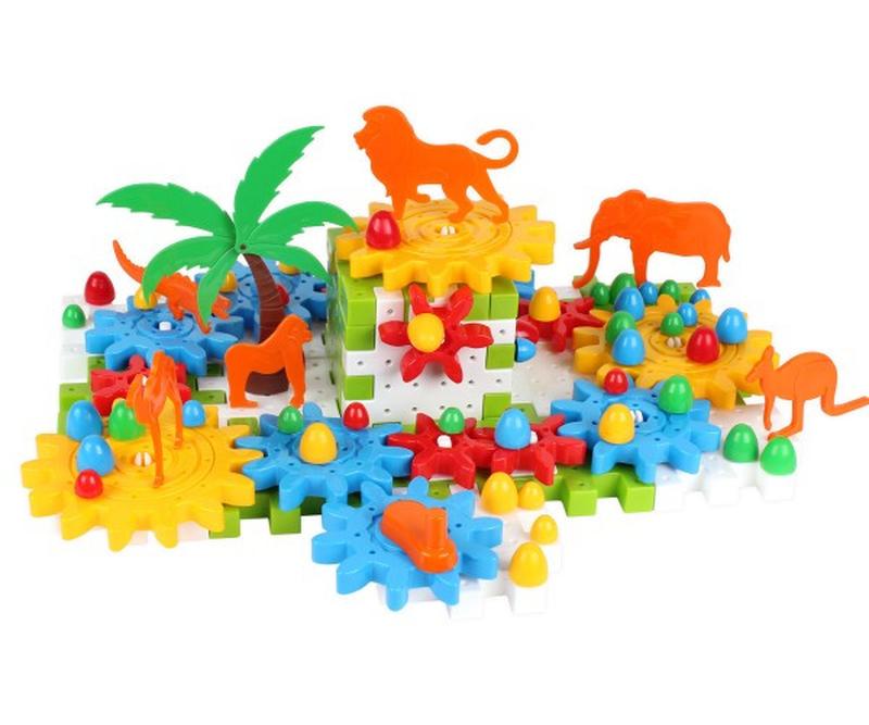 Оновлений конструктор з шестернями «ТехноК» дарує дітям подвійну радість. Чому? Більше деталей — більше можливостей. 118 яскравих деталей з якісної пластмаси значно урізноманітнять процес складання конструктора та захопливі ігри з ним. Після того, як дитина об’єднає шестерні, пластини-пазли, фігурки звірів, пальми та інші елементи конструктора, вона отримає захопливу конструкцію, якою дуже цікаво гратися. Цей конструктор є не тільки цікавим, а й корисним: прокручуючи шестерні, дитина змушує рухатися іграшкових звірів і вивчає при цьому окремі фізичні явища та закони механіки. Крім того, іграшка знайомить дітей із фауною та флорою: фігурки слона, верблюда, мавпи, крокодила, лева та кенгуру входять до комплекту конструктора. Всі деталі конструктора виготовлені з якісної пластмаси, без запаху та шкідливих складників. Продається іграшка в красивій коробці. Такий варіант пакування чудовий вибір для подарунка.