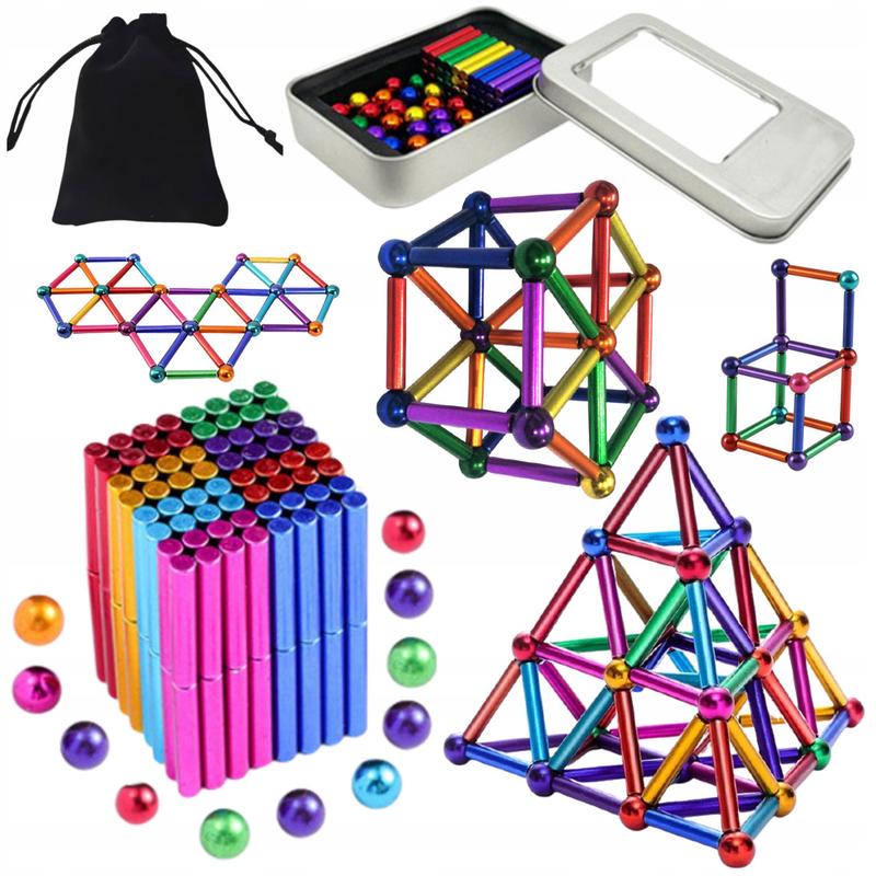 Магнитный конструктор 63 деталей Преимущества: - Головоломка развивает мышление, снимает стресс, развивает визуальное воображение и логику. - Мелкие шарики будут эффективным тренажёром для пальцев - играть не только интересно, но и полезно. - Хороший вариант, размять пальцы, если работаете за компьютером; - Качество и долговечность Описание: Магнитный конструктор -- это антистресс для взрослых или игрушка для детей школьного возраста. Складывая необычные фигуры, Вы непременно отвлечетесь, отпустите посторонние мысли и интересно проведёте время. Также Магнитный конструктор Neo - это отличный способ развивать мелкую моторику рук как детям (играть только под присмотром родителей, поскольку детали маленького размера). Этот антистресс магнитный неокуб с цилиндрами хоть и обладает меньшим количеством элементов, чем классический, но зато их целых 2 типа: здесь есть не только привычные магнитные шарики, но и палочки (цилиндры), комбинируя которые можно создавать причудливые фигуры. Характеристики - Материал: металл - Цвет: разноцветный - Вес: 0,2 кг - Размер стального шара: 8 мм - Размер магнитной палочки : 4 мм * 24 мм