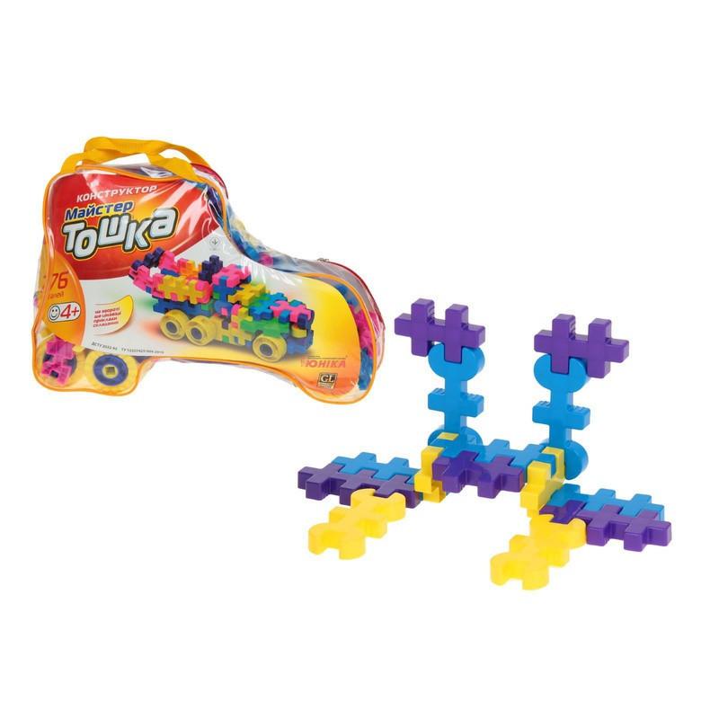 Конструктор "Мастер Тошка" 0044 Юника лучший умственный тренажер для деток, с самых малых лет, так как он развивает восприятие, усидчивость, воображение и логическое мышление! Ведь каждый родитель мечтает, что бы его ребёнок был самый-самый умный. Также конструктор отлично развивает смекалку и зрительную память, что в дальнейшем очень пригодится вашему малышу. Собирая конструктор ваш ребеночек будет фантазировать на заданную тематику с удовольствием сопоставляя детали и размышляя. С помощью конструктора ребенок научится распознавать цвета, размеры, создавать свои конструкции. Игра с конструктором будет способствовать развитию у малыша концентрации внимания, координации движений, мелкой моторики и фантазии. Цвета конструктора приятные и мягкие. Присутствуют основные цвета: желтый, синий, зеленый, розовый, сиреневый. В наборе 276 пластиковых деталей, которые имеют форму пазлов, скрепляя их вместе можно сконструировать необычную машину.