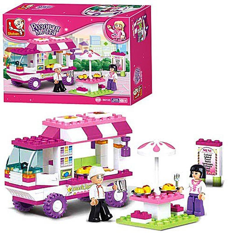 Конструктор для девочек Уличное кафе с машинкой и фигурками из серии Розовая мечта Sluban. Набор состоит из 102 деталей. В коробке19*14*4.5см