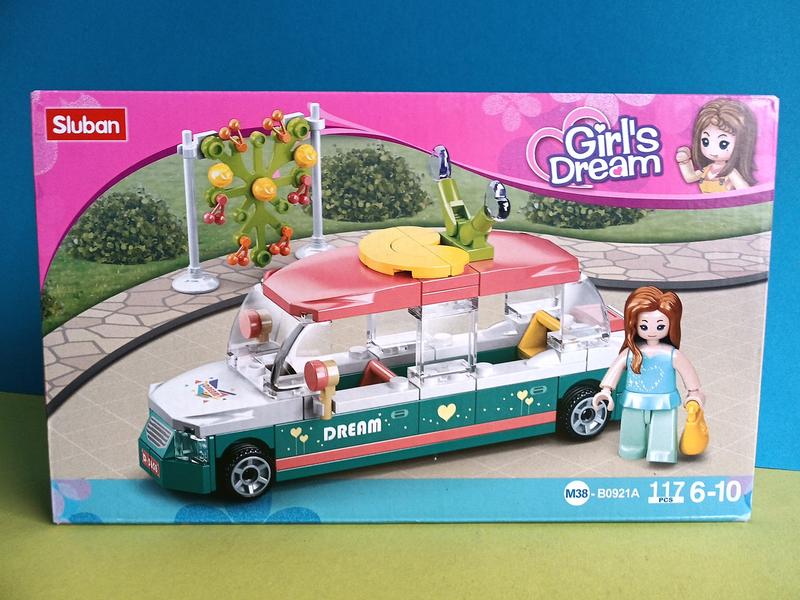 Конструктор для девочек лимузин с фигуркой sluban из серии конструкторов розовая мечта