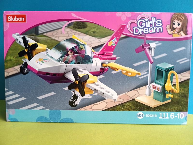 Конструктор для девочек Самолет с фигуркой Sluban из серии конструкторов Розовая мечта Набор состоит из 111 деталей. В коробке 24*15*4.5см