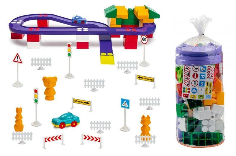 Конструктор "Орион" No5 (100 дет.) - красочный, яркий конструктор, состоящий из большого количества деталей - крупных блоков разной формы и размера, легко соединяющихся между собой в замысловатые конструкции, составных элементов дороги сложной конфигурации, двух легковых машинок, а также знаков дорожного движения, ограждений в виде заборчиков и маленьких фигурок зайчика, мишки и лисички. Все элементы конструктора максимально продуманы для того, чтобы не только заинтересовать ребенка, но у надолго занять его внимание увлекательностью процесса сборки. Игра с конструктором -- это не только развлечение, но и развивающее занятие, так как, собирая между собой все элементы, малыш осваивает новые для себя навыки, фантазирует, тренирует мелкую моторику рук. Все детали конструктора довольно крупные -- можно не бояться, что ребенок случайно проглотит блок в процессе игры. Конструктор изготовлен из качественных материалов, абсолютно безопасных для здоровья ребенка. В комплекте: 100 деталей. Уважаемые клиенты, отправляя Вам товар, мы его пакуем самостоятельно, для того чтобы Вы не переплачивали за упаковку на почте, а платили только доставку. Это позволяет сэкономить от 10 до 100 грн в зависимости от объема посылки.