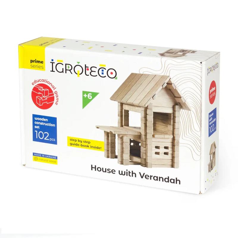 Конструктор «Домик с верандой» предназначен для детей от 4-ти лет. Собрав изделие по инструкции, ребенок получает компактный домик с двумя ярусами и верандой и сможет поселить в нем любимую куклу, солдатика или сказочного героя. Составлять конструктор легко и интересно, ведь именно этот вид домика относится к пропорциональным симметричным конструкциям. Брусья и полубрусья имеют пазы для скрепления деталей между собой. Сечение брусьев - квадратное. Самая короткая деталь - 24 мм. Самая длинная - 180 мм. Изделие изготовлено из твердых пород древесины, без лака и краски. Игрушка абсолютно натуральная, экологичная, ведь изготовлена из цельной древесины без каких-либо покрытий. Возраст: от 4-х лет Количество деталей 102 шт. Размеры в сложенном виде: 19х12х15 Размеры упаковки: 6,5х28х18 Материал: Натуральное дерево Производитель: ТМ Игротеко (Украина)