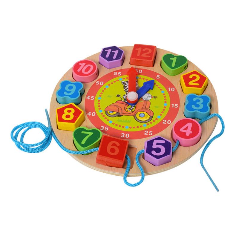 Вкладыши с геометрическими фигурами и шнуровка. Знакомимся с цифрами, фигурами, развиваем мелкую моторику. Красивые часики станут полезным аксессуаром в детской комнате, отличным тренажером для маленьких пальчиков! Выполненные из экологичной древесины, вкладыши-часы-шнуровка наполнят помещение приятным натуральным запахом. А также познакомят малыша с цифрами и разнообразными геометрическими фигурами. С такой игрушкой хорошо развивается моторика, координация, логическое мышление. Учить цифры с вкладышами-часами- шнуровкой не скучно, а весело! К тому же каждая фигурка оснащена дырочками. Таким образом детали циферблата превращаются в элементы шнуровки! В наборе: - деревянный циферблат с пластмассовыми стрелками. - 12 деревянных фигурок с цифрами и отверстиями для шнурования. - шнурок. Размер игрушки - 18х1,3 см