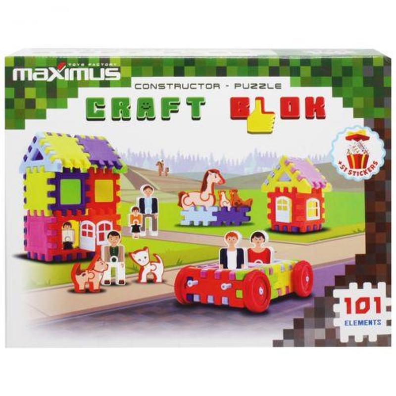 Игровой набор конструктора "Craft Blok" состоит из 101 элемента. Из деталей набора можно построить несколько домов или один большой дом, машину, фигурки человечков и животных. Также есть наклейки для фигурок. Набор выполнен из прочных и безопасных материалов. Подходит для детей от 3-х лет.