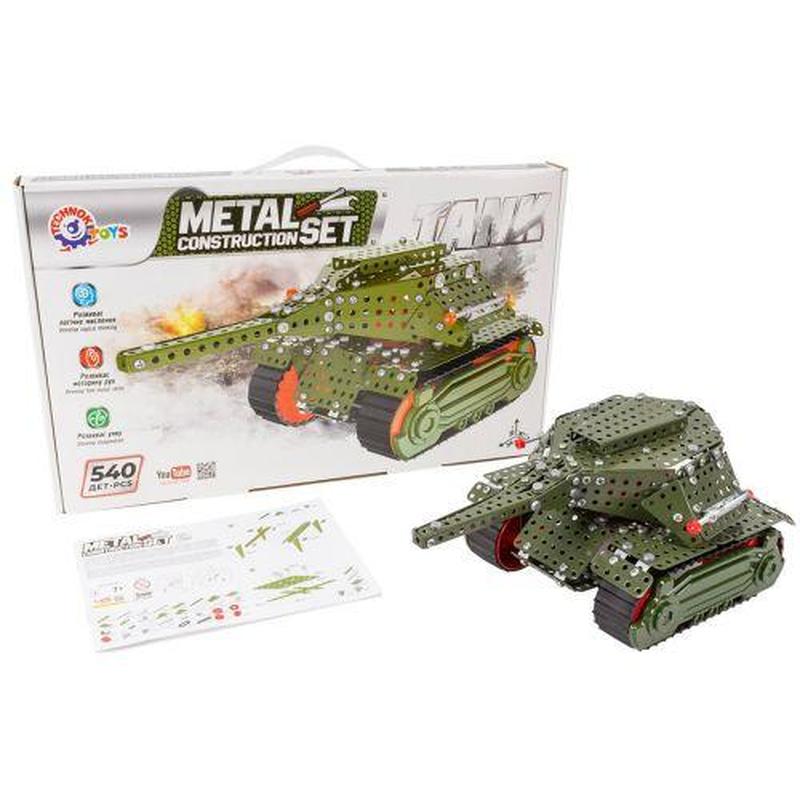 Завдяки цій іграшці дитина отримує перші навички зʼєднання деталей гвинтами і гайками, розвиває фантазію і просторову уяву. Діти можуть відчути себе справжніми інженерами, складаючи складну модель із набору деталей. 540 деталей, довжина зібраної моделі 34 см, висота зібраної моделі 16 см, рухомі гумові гусениці, башта танка повертається на 360 °.