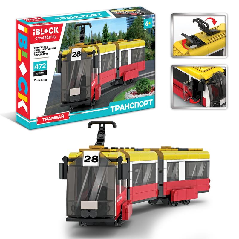 Конструктор iblock трамвай 3-х секционный 472 дет., pl-921-381