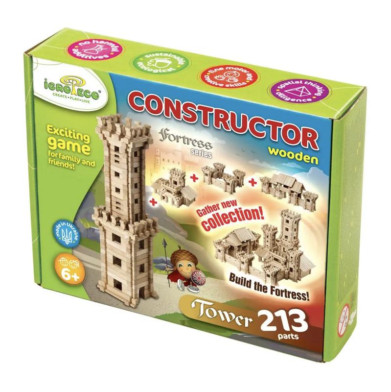 Конструктор «Башня» предназначен для деток от 6-ти до 12-ти лет. Башня - это оборонительное здание, традиционно строившееся в старину, на холмах или в стенах укрепленных городов для защиты от врагов, оттуда часовые могли нести стражу, наблюдать за крепостью, тем самым оберегая город от врагов. Конструктор включает в себя 213 деталей, дает возможность построения высокой (45 см) башни, а также легко трансформируется в настоящего викинга или поезд, имеет подробную поэтапную инструкцию, которая сделает игры вашего ребенка разнообразными и вдохновенными. Научившись составлять по инструкции, поняв принцип построения паз-в-паз, ребенок сможет конструировать фантастические фигуры и объекты по собственному вкусу и усмотрению. Изделие изготовлено из твердых пород древесины, не лакировано, не крашено. Игрушка абсолютно натуральная, экологичная, ведь изготовлена из цельной древесины без каких-либо покрытий. Игра с конструктором развивает у ребенка пространственное мышление, логику, внимание, мелкую моторику и творческие навыки. Умение действовать на базе инструкции, то есть по схеме, представленной в каждом изделии станет хорошей базой для быстрого и эффективного обучения в школе. Соединение деталей не по инструкции, а по собственному желанию и фантазии, будет способствовать развитию воображения, нестандартного мышления, творчества. Все изделия ТМ "Игротеко" смешиваются между собой, поэтому можно их коллекционировать. Имея больше конструкторов ТМ «Игротеко», ребенок сможет дать волю своей фантазии! Внимание! Как и настоящие дома, наши конструкторы советуем начинать складывать с фундамента! На ровной жесткой поверхности выложите самый низкий уровень, а затем уровень по уровню, брус за брусом возводите стены, перекладывайте детали паз-в-паз, крепите их, делайте перемычки, соединяйте пристройки и накрывайте крышей! Всё как в настоящей жизни! СЕРИЯ «Фортеця» («Fortress») ТМ «Игротеко» состоит из 4 наборов - «Башня», «Оборонительные стены», «Въездные ворота» и «Замок», их можно собирать как отдельно, так и все вместе - тогда они составят собой невероятный город- крепость.