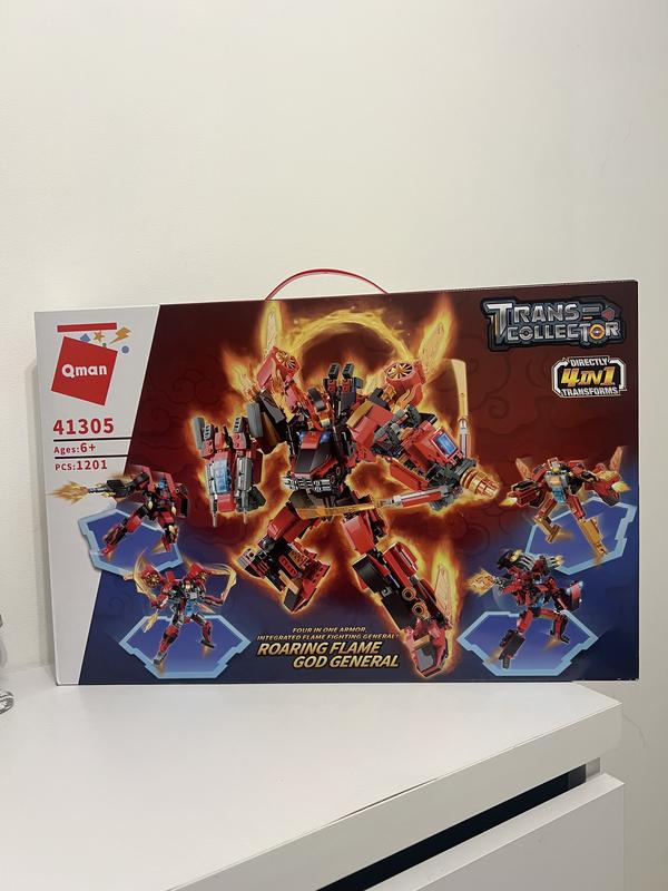 Усередині яскравої коробки ― зрозуміла інструкція і герметично упаковані деталі, з яких можна зібрати чотирьох роботів-трансформерів або одного великого робота. Розмір упаковки : 52 х 34 х 7 см.