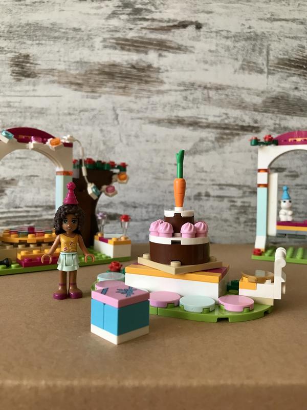 Замечательный яркий конструктор. Все детали на месте. Конструкторский набор LEGO Friends День Рождения (41110) непременно порадует вашу маленькую малышку, колено или внучку. Он призван подарить веселье, окунуть даже в будние дни в атмосферу праздника, радости и позитива. В упаковке из картона, оформленной в красочных тонах, присутствуют инструкция, 191 деталь для сборки привлекательной площадки для празднования со всем необходимым оборудованием. Тщательно детализированная мини-фигурка девочки и зверушка прилагаются. Все это сделано из пластика, нетоксичного и устойчивого к небольшим механическим воздействиям и любым погодным условиям. Выходя из последнего, LEGO Friends День Рождения (41110) подходит для игр и вне дома. Главное при этом - не разбавить мелкие аксессуары. Бренд: LEGO Тип: Блоковый конструктор Серия: Lego Friends Возраст: от 5 лет Материал: пластик Размеры, см: площадка 9х13х6, свинг 10х6х4 Количество деталей: 191 Описание: Андреа отправила приглашение всем питомцам друзей на празднования Дня рождения ее кролика Дейзи! Помоги ей украсить сад для вечеринки, пока Дейзи и птица Вайолет весело проводят время на качелях. Затем Андреа и Вайолет выходят на сцену для специального представления. Пришло время надеть праздничные колпаки и попробовать огромный морковный пирог, а затем подарить Дейзи подарок!