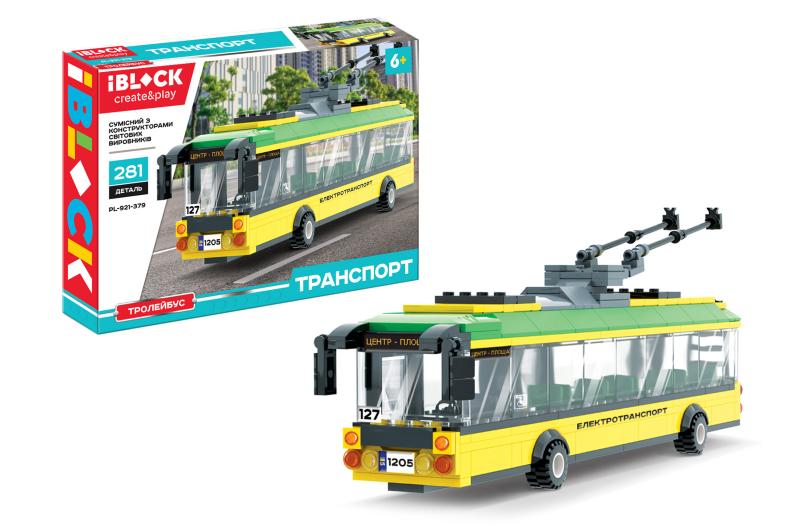 Конструктор троллейбус iblock транспорт открываются двери и поднимается люк 281 деталь (pl...