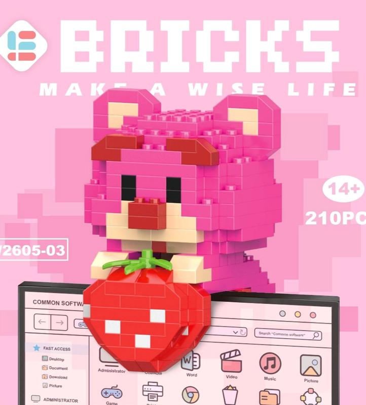 Конструктор клубничный мишка лотсо, медвежонок с клубничной, игрушка пластик brick