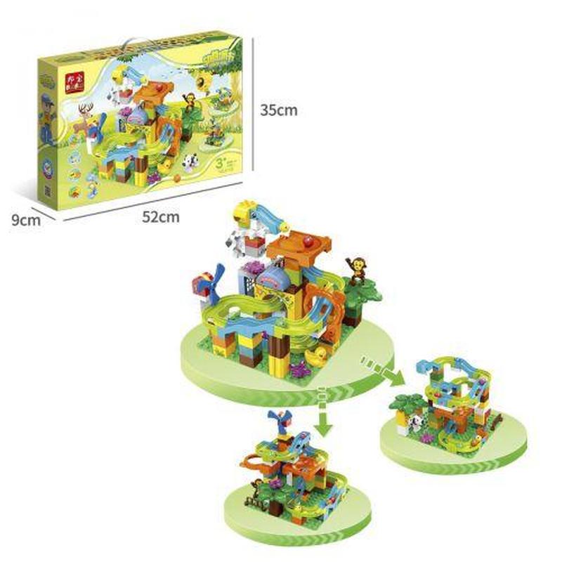С конструктором "Веселая горка" можно построить многоуровневый замок с дорожками, по которым можно спускать шарики с верхнего этажа. Замок можно складывать разными способами. В наборе также есть множество декоративных элементов и фигурок животных. Конструктор подойдет детям от 3-х лет. Упаковка: Коробка Цвет: Разноцветный Вес в упаковке: 1470 г Габариты в упаковке: 9 x 35 x 52 см Cтрана производитель: Китай Материал: Пластик Комплектация: 110 деталей