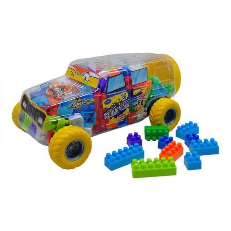 Пластиковый детский конструктор, укомплектованный в оригинальную упаковку в виде машинки. Упаковка выступает в роли полноценной игрушки: машинка имеет прорезиненные колеса, пластиковый корпус прочный и ударостойкий. Внутри находится множество разноцветных элементов конструктора, с которым ребенок сможет собрать самые разнообразные постройки.