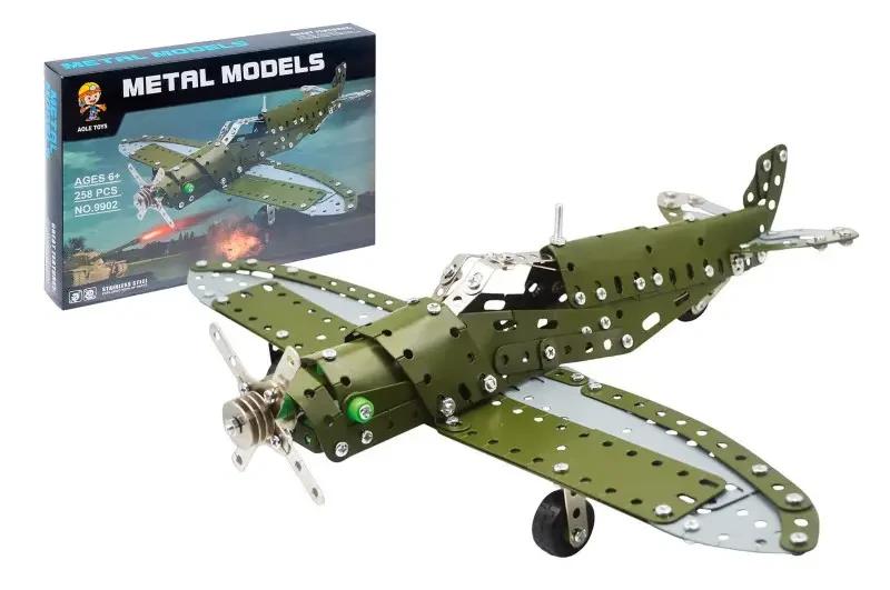 Конструктор металлический военный самолет 258 деталей 9902 Изготовлен из литого под давлением цинкового сплава, поверхность обработана никелированием. .Внешний вид бомбера классный, с высокой адгезией между деталями, стойкостью к истиранию и давлению, что обеспечивает стабильность формы. .Включает цветные графические инструкции, каждый шаг очень понятен, есть инструменты для сборки: гаечный ключ и отвертка, готовый размер 39 x 38 x 8 см Подходит для детей старше 5 лет Коробка: 34*5*24см