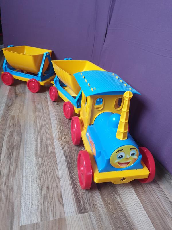 Поезд с двумя прицепами. новый. но имеет маленький дефект (на последнем фото)
