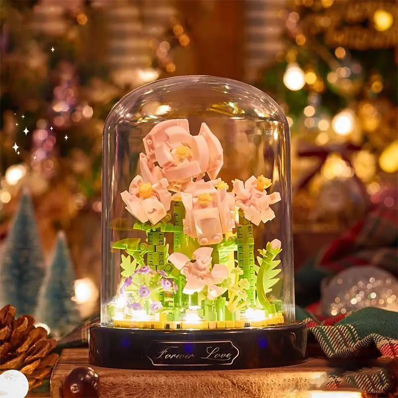 Конструктор ночник блочный детский с подсветкой цветок в колбе розовые розы цветы