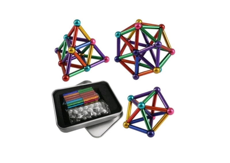 Виробник: Інший виробник Кілька примірників у наявності Кольоровий магнітний конструктор палички та кульки містить різнобарвні палички (36 штук) і кульки (27 штук). Дасть вам змогу цікаво провести час і відпочити, створюючи об'ємні фігури. Має вікове обмеження (8+ років). Розвиває логіку та образне мислення, знімає стрес і покращує настрій. До комплектації входить 36 паличок різних кольорів і 27 кульок; Паковання: металева коробочка з м'яким ложем; Діаметр кульки 8 мм; Довжина палички 23 мм; Вікове обмеження 8+ років.