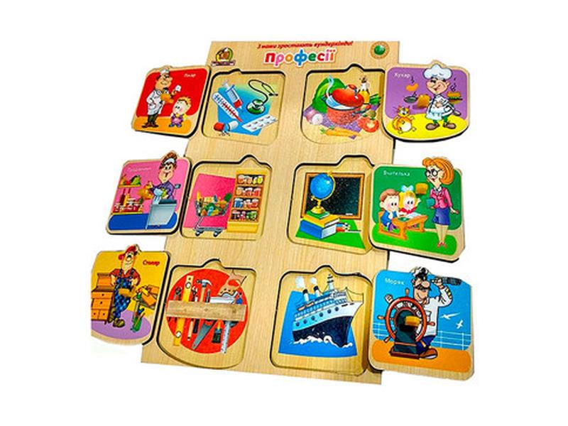 Деревянная игрушка Рамка-вкладыш Профессии - научит ребенка различать размеры, с помощью этой игрушки родители с малышом могут выполнить целую серию задач на развитие мелкой моторики памяти и внимания. Рамки-вкладыши представляют собой множество форм и разновидностей, с их помощью изучают: фрукты, овощи, животных, геометрию, больше, меньше, разные цвета. Ключевой развивающей функцией является тренировка пространственного мышления и мелкой моторики. Экспериментируя малыш сумеет подбирать нужные детали на глаз и выполнять правильную действие сразу без предварительных практических проб. Деревянные игрушки изготовлены из экологически чистых материалов, не вызывают аллергическую реакцию. Если Вы хотите купить Деревянная игрушка Рамка-вкладыш Профессии, напишите нашему консультанту или наберите нас и наши менеджеры помогут Вам подобрать подходящую игрушку.