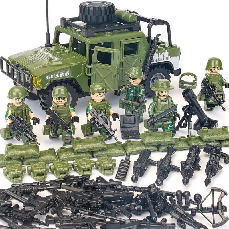 Набір із 6 героїв + машина + зброя як на фото. Кожен герой йде в індивідуальному запаяному пакетику, без коробки. Для гри та для колекції. Розвивають дрібну моторику дітей. Виконані з ABS пластику. Країна виробник: Китай Вікова група: Від 3 років Матеріал: Пластик Стать: Для хлопчиків Стан: Новий Тематика: Військова техніка Тип конструктора: Блочний Упаковка: Поліетиленовий пакет