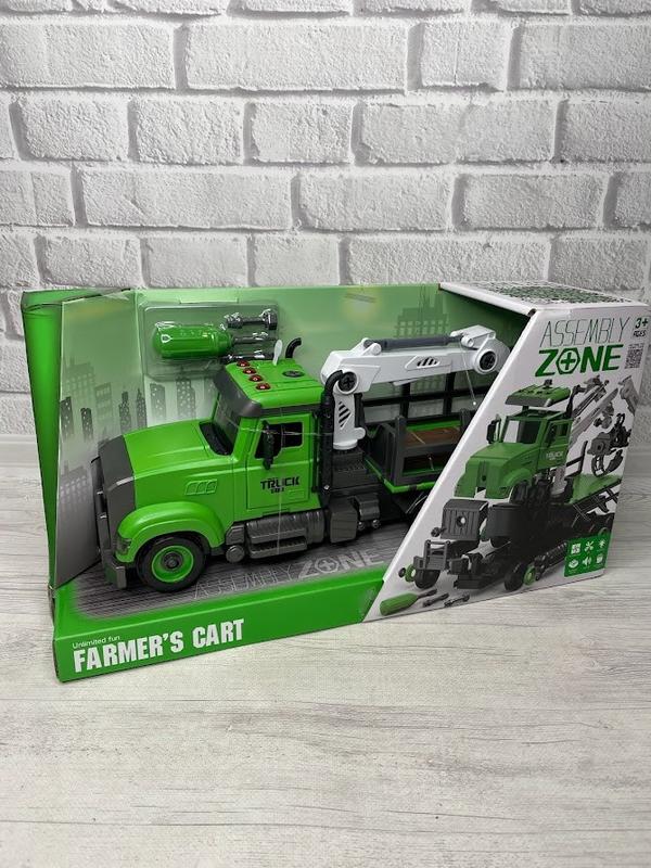 Кольорова вантажівка з потужними колесами та відкритим кузовом - чудовий подарунок хлопчику на будь-яке свято! Деталізована модель з тематичними написами має одну особливість - розбірну конструкцію. В допомогу юному інженеру додається маленька викрутка з насадками. Хлопчику неодмінно сподобається іграшкова спецтехніка та захоплюючий процес збірки. Для того, щоб гра була цікавішою, навантажувач має додаткові звукові та світлові ефекти. Натисніть по черзі на кнопки, які розташовані на кабіні водія, та почуєте різні характерні звуки. Кабіна водія підсвічується яскравим світлом. Особливості: - виконана у вигляді вантажівки; - кабіна машини оснащена 4 кнопками, натискання на які активує відтворення звукових ефектів; - яскраве підсвічування кабіни; - ефекти працюють від батарейок, які входять до комплекту; - інерційний механізм; - габаритні розміри машини: 37*12*16 см; - двері машини відкриваються; - до комплекту входить викрутка з 2 насадками; - кузов машини виконує роль платформи для збирання конструктора; - іграшка виготовлена з якісних матеріалів, безпечних для здоров’я дитини. Розмір упаковки 42.5*22*12,5 см