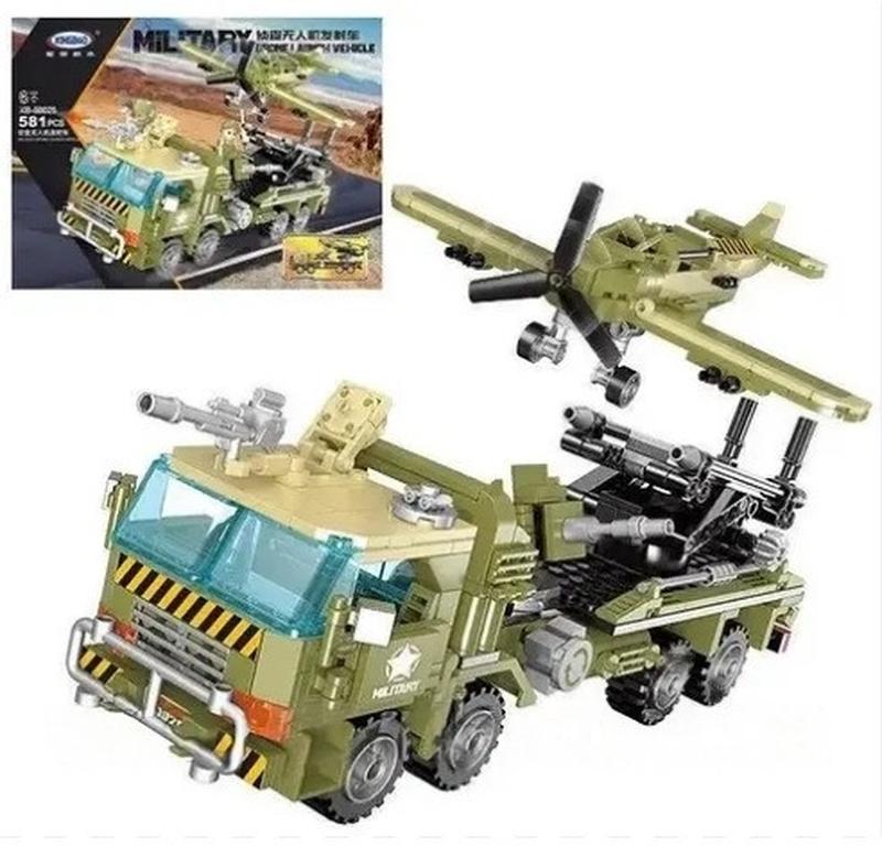 Конструктор дитячий "Військова техніка". Кількість деталей: 581 шт. Тип з'єднання елементів: блоковий. Кількість міні-фігурок персонажів: 3 шт. Матеріал: пластик. Вік дитини: від 6 років.