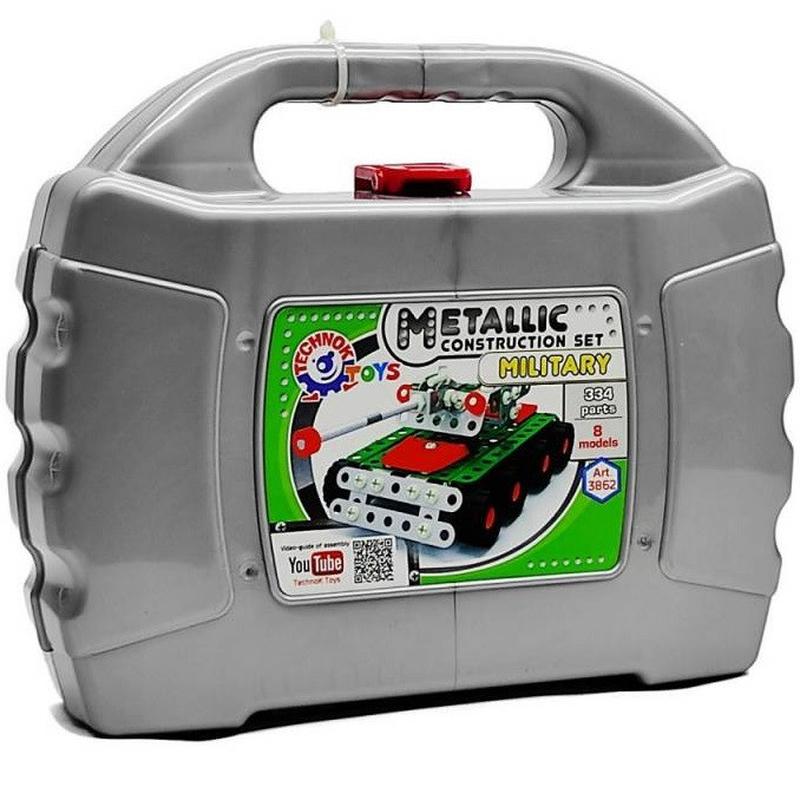 Конструктор металлический Милитари ТехноК состоит из 334 деталей и можно самостоятельно создать одну из 8 предложенных моделей. Конструктор упакован в пластиковый чемодан цвета серебристый металлик с защелкой. Вес конструктора 1110 г. В комплекте 334 деталь. Материал: метал, пластик. Размер чемоданчика 27 * 8.5 * 22.5 см.