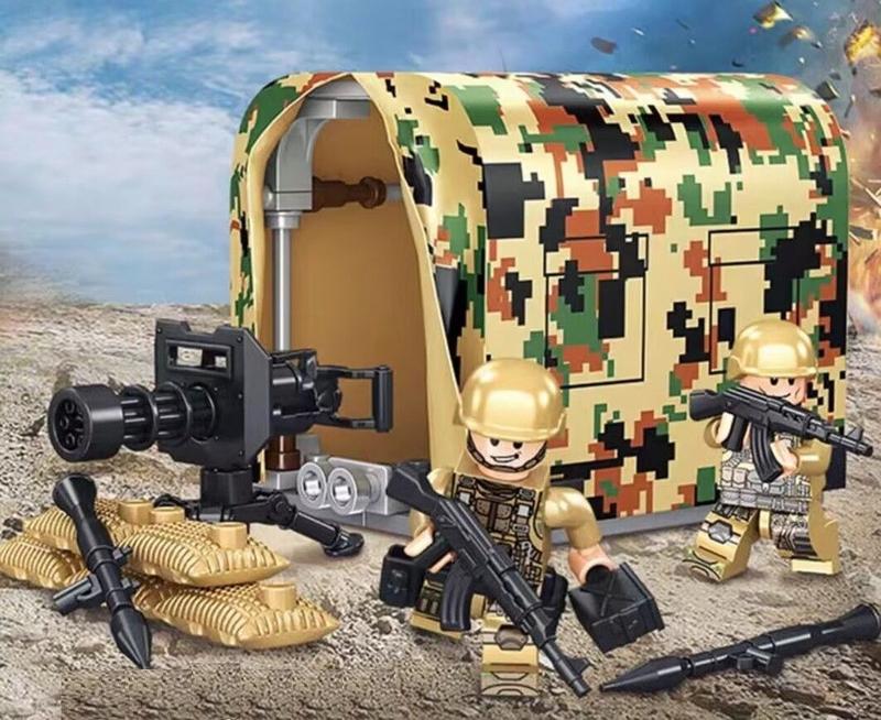 Конструктор военная база штаб палатка аксессуары для мини фигурок человечков спецназ военных SWAT + 2 фигурки Каждый герой идёт в индивидуальном запаянном пакетике, без коробки. Для игры и для коллекции. Развивают мелкую моторику детей. Выполнены из ABS пластика.