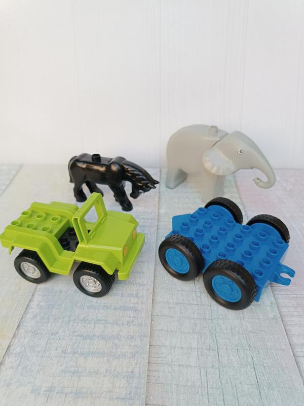 Набір деталей до конструктора Lego Duplo Мають нюанси кінь не тримає голову та потертості, у слона потертості на очах, причеп має тріщину на фаркопі, автівку помити треба Всі оригінал