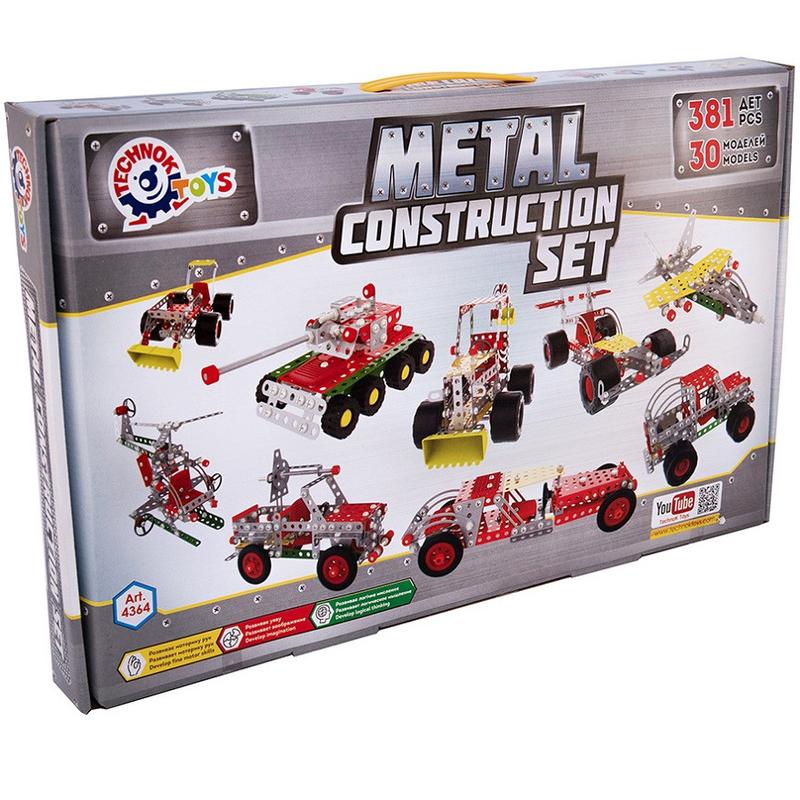 Данный набор вызовет настоящий восторг у вашего ребенка, ведь он состоит из 381 детали - в том числе цветных металлических пластин, винтов, болтов и гаек, а также оригинальных деталей из пластмассы. Используя все эти элементы, безграничную детскую фантазию и настоящую отвертку, ваш маленький механик сможет самостоятельно создать одну из 30-ти предложенных моделей или создать свою. Пошаговая инструкция поможет собрать как простые модели, такие как -- стул, скамейка или тачки, так и более сложные -- мотоцикл, грейдер, внедорожник, истребитель, вертолет, строительный кран или трактор. Вес конструктора: 1955 гр. В комплекте 381 деталь. Материал: метал, пластик. Размер коробки 49 * 4.5 * 30 см.