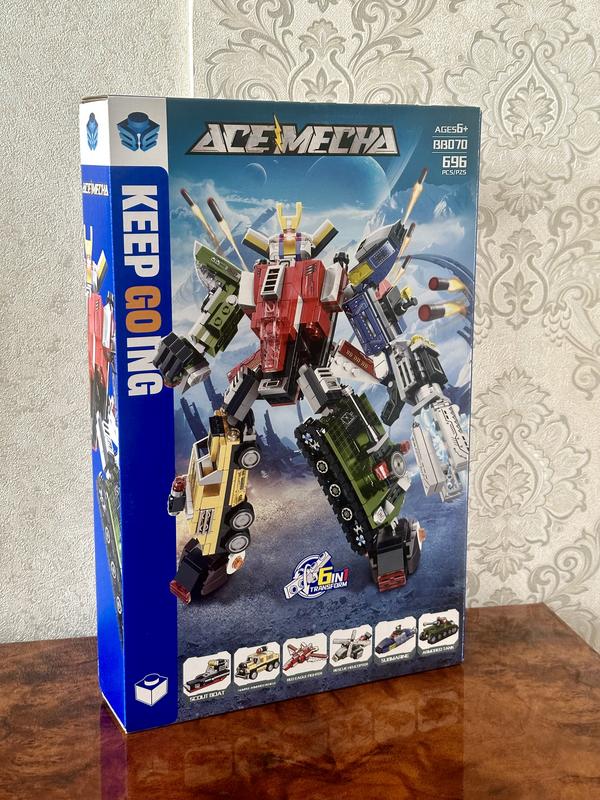 Конструктор Военная техника + робот 6 в 1 (696 детали) - отличный подарок для вашего ребенка. Из данного конструктора можно составить 6 видов военной техники ( разведывательная лодка, бронированный автомобиль, истребитель, вертолет, суфмарин, танк ), а затем из них сделать робота с подвижными деталями. Детали яркие и хорошо крепятся между собой. В комплекте наклейки и пошаговая инструкция. Размер упаковки 42-27-6,5 см.